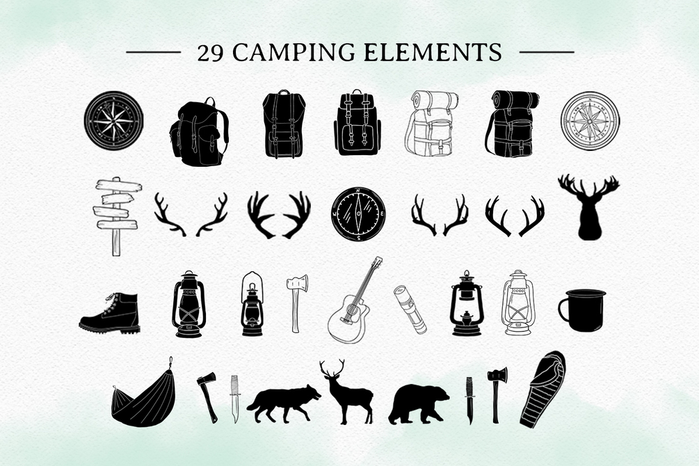 73 Camping Procreate Stamp Brushes in total in this pack: